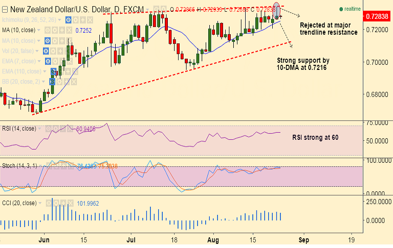 - Strong support is seen by 10-DMA at 0.7216, break below will see test of 20-DMA at 0.72 levels.
