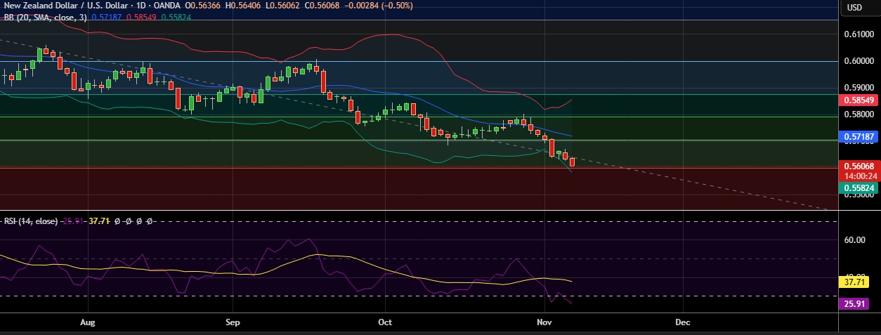 • Immediate resistance is located at 0.5644(Daily high), any close above will push the pair towards 0.5703(38.2%fib).