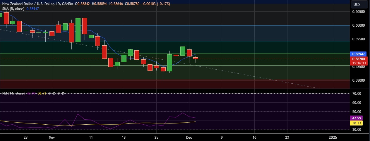 • NZD/USD dollar dipped on Tuesday as Kiwi dollar was on defensive as US dollar strength persisted following political turmoil in France and U.S. President-elect Donald Trump's tariff threats.