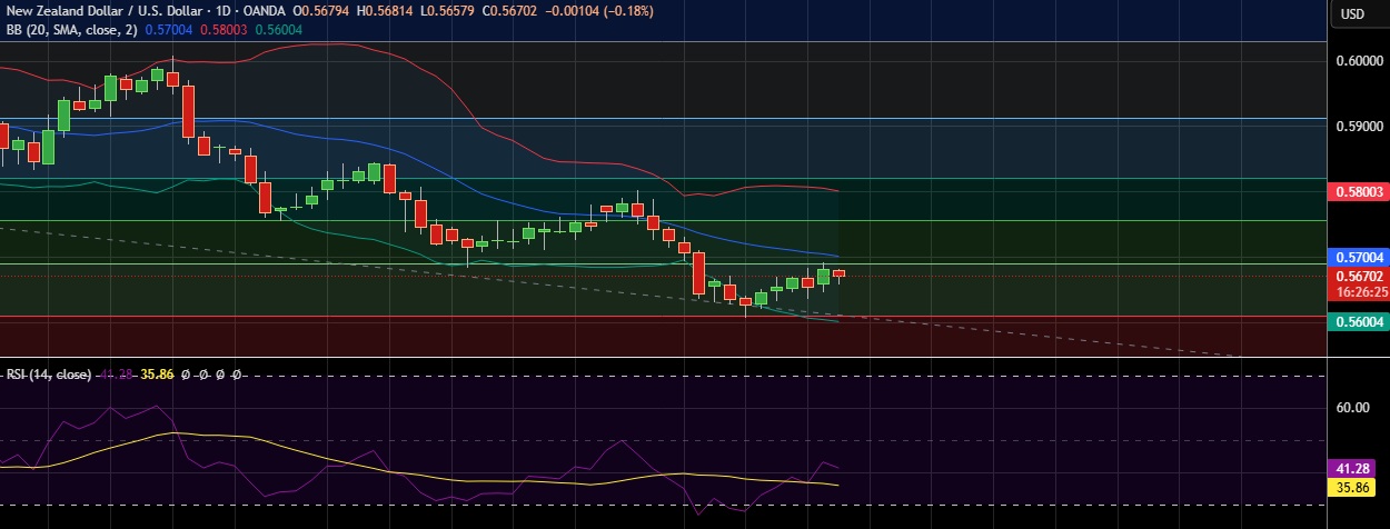 • Support is seen at 0.5611(23.6%fib) and break below could take the pair towards 0.5600 (Psychological level).