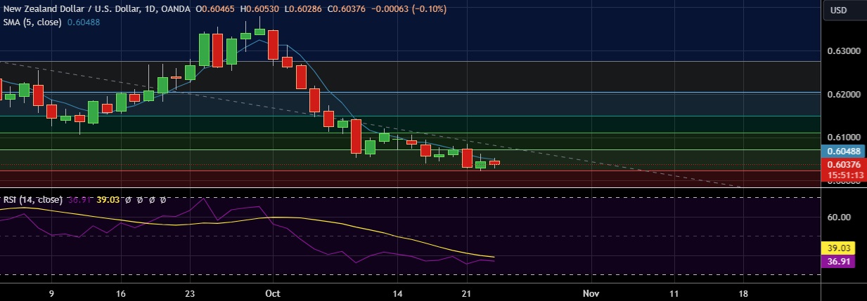 • Support is seen at 0.6022 (23.6%fib) and break below could take the pair towards 0.6000(Psychological level ).