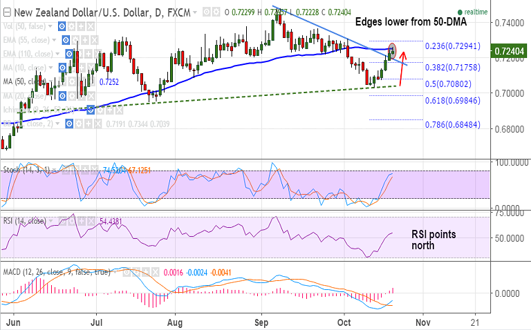 - NZD/USD edges lower from 50-DMA, we see further gains only on break above.
