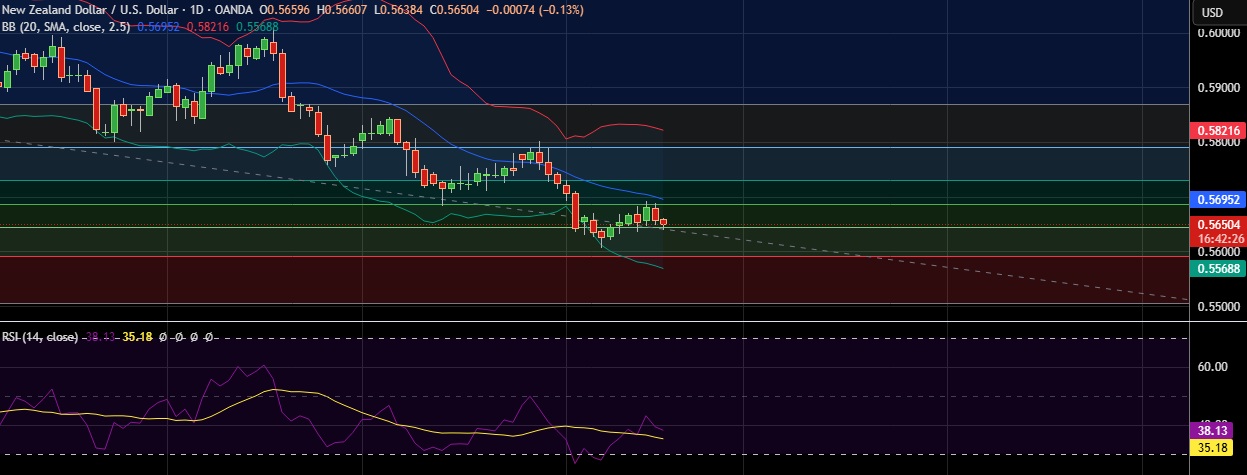 • Support is seen at 0.5640 (38.2%fib) and break below could take the pair towards 0.5600 (Psychological level).