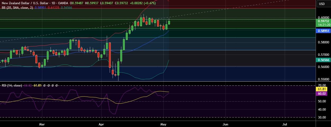 • At GMT 06:30, The NewZealand dollar was 0.55% stronger at $0.5973 against US dollar
