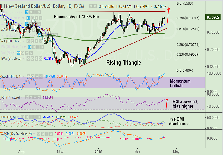 - On the flipside, retrace below 50-DMA could see resumption of weakness till 200-DMA at 0.7183.