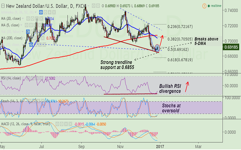 - Resistance levels - 0.6891 (5-DMA), 0.6916 (50% Fib of 0.63470 to 0.74854 rally), 0.6947 (Dec 12 high), 0.70, 0.7042 (20-DMA)