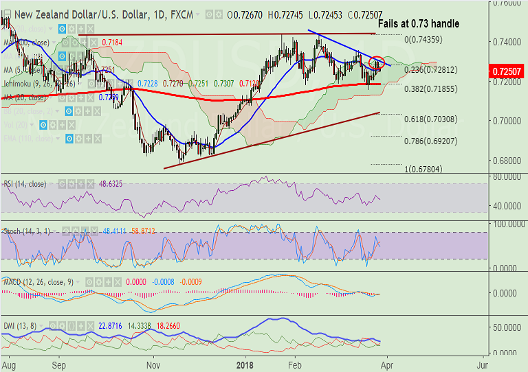 - NZD/USD extends decline for 2nd consecutive day after upside was rejected at 0.73 handle.