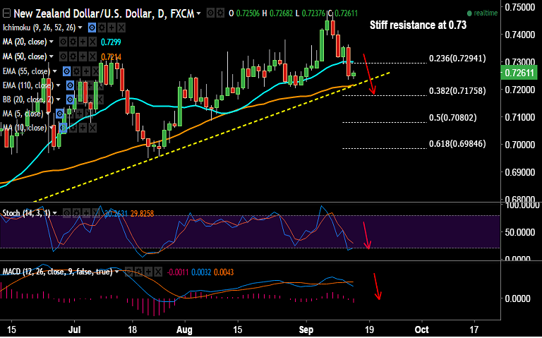 - Stiff resistance seen around 0.73 levels (20-DMA at 0.7299 and 23.6% Fib at 0.7294), upside to resume on break above.