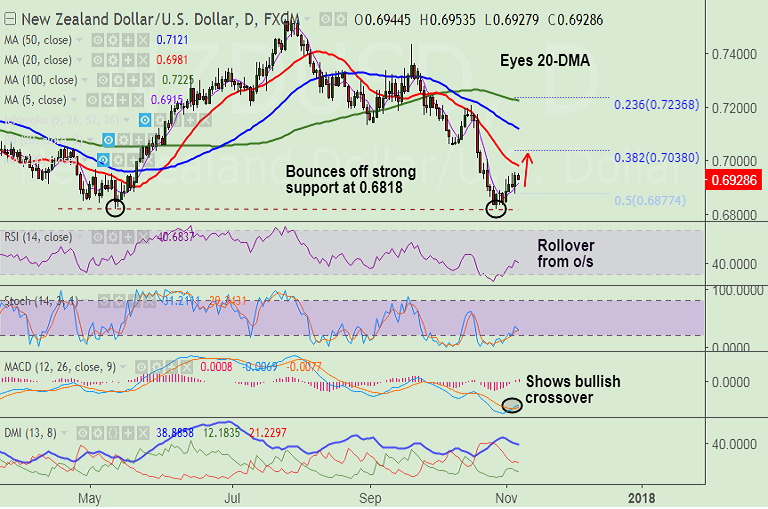 Support levels - 0.6915 (5-DMA), 0.69, 0.6818 (trendline), 0.68