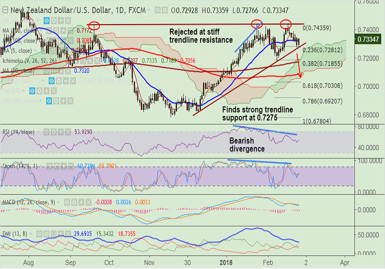 - NZD/USD hovers around 20-DMA at 0.7320, decisive close above could see minor upside.