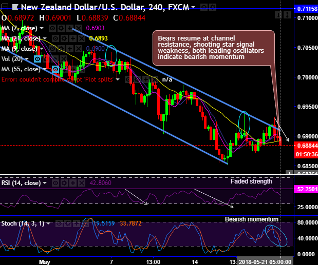 Overall, as the US dollar finally came to life in the recent past, bears are pushing NZDUSD below its 4-month lows. If it sustains the break below 0.6893 levels (21SMA), then a further decline towards 0.6850 is on the cards.
