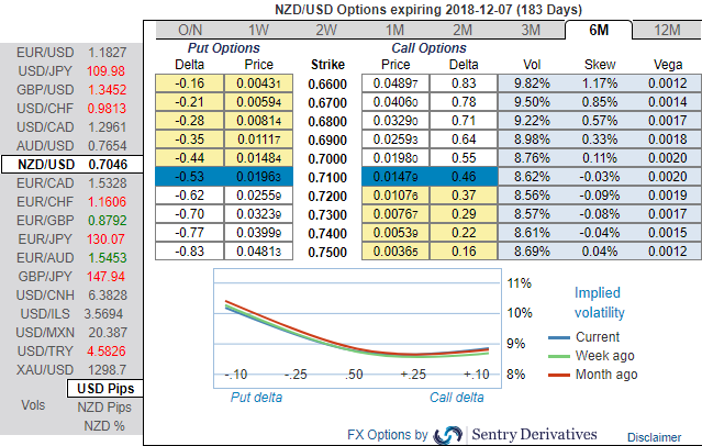 Bids on 3m skews have come in quite worthy, as they signaled the hedging interests for further bearish risks. Thus, we expect NZDUSD to depreciate to USD 0.68 by end of 3Q’19. Accordingly, we’ve recommended diagonal put ratio back spreads in order to participate both momentary upswings in the consolidation phase and anticipated downside risks.