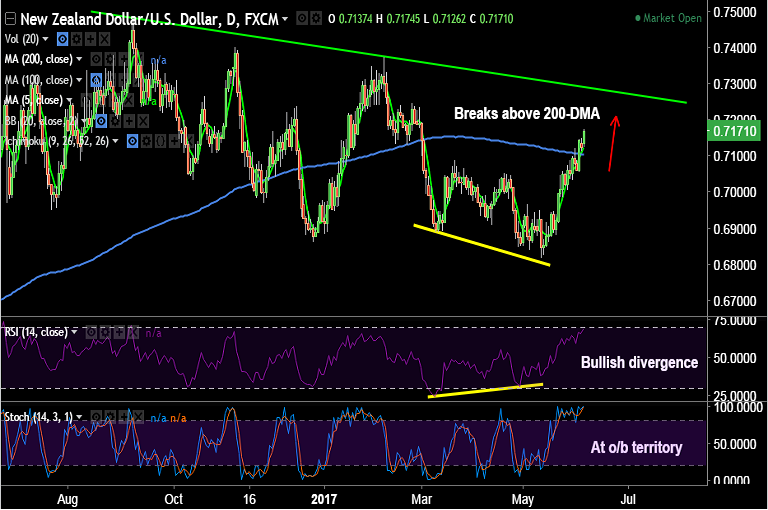 - NZD/USD extends break above 200-DMA and upside remains intact as long as pair holds above.