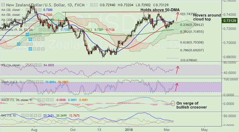 - The pair is extending gains above 50-DMA, edged above 20-DMA and is currently hovering above daily cloud.