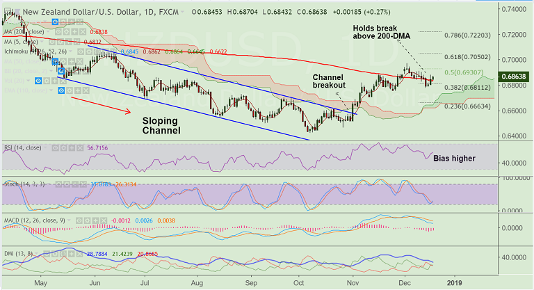 - NZD/USD holds break above 200-DMA, trades 0.26% higher on the day at 0.6863 at the time of writing.