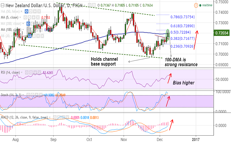 - Technicals support upside in the pair. Scope for test of 61.8% Fib at 0.7289.