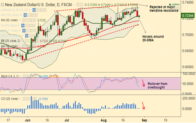Recommendation: Good to go short on close below 20-DMA at 0.7225, SL: 0.73, TP: 0.7169/ 0.7110/ 0.7087