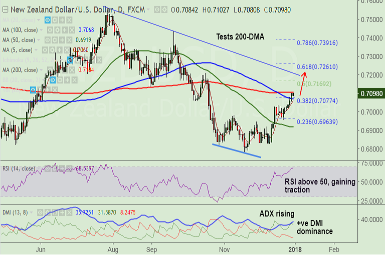 Resistance levels - 0.7104 (200-DMA), 0.7206 (Oct 17 high), 0.7261 (61.8% Fib)