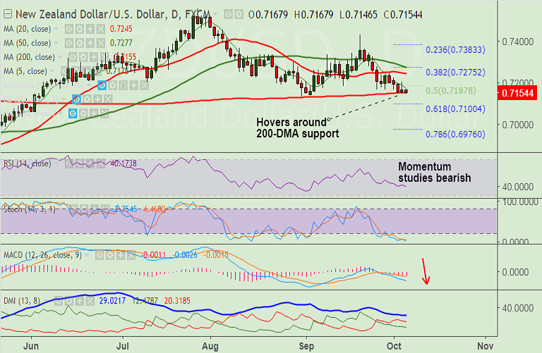 - Breach of 200-DMA support at 0.7155 will take the pair to 0.71 and then 0.7050 levels.