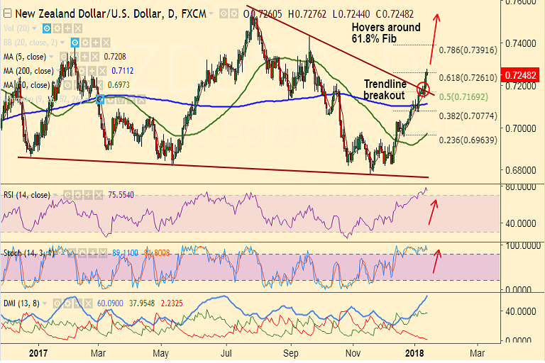 Recommendation: Good to go long on dips around 0.7230/40, SL: 0.7160, TP: 0.7275/ 0.73/ 0.7345/ 0.7390.