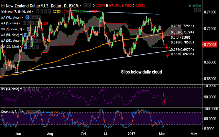 Resistance levels - 0.7087 (cloud base), 0.7091 (5-DMA), 0.7148 (200-DMA)