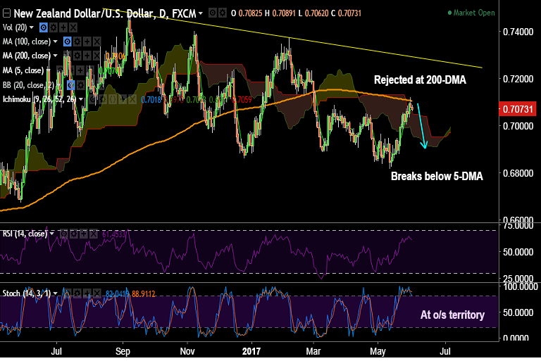 Recommendation: Good to go short on break below 100-DMA at 0.7057, SL: 0.71, TP: 0.70/ 0.6970/ 0.6950.