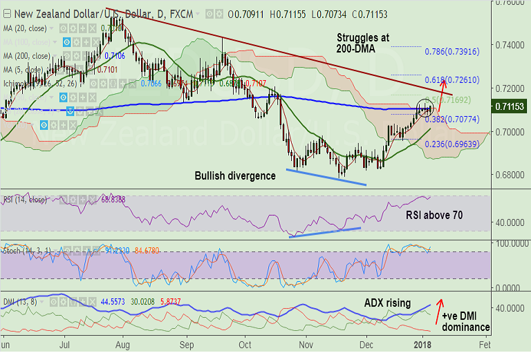 Support levels - 0.7104 (200-DMA), 0.7101 (5-DMA), 0.7061 (100-SMA)