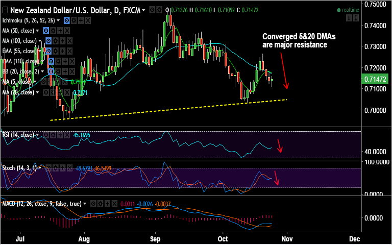- NZD/USD finds major resistance around 0.7171 level which is nearly converged 5&20-DMAs.