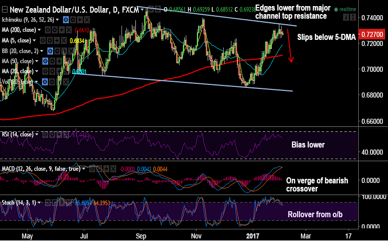 - Price action slips below 5-DMA, on track to test 20-DMA at 0.7189. Violation at 20-DMA raises scope for test of 200-DMA at0.7108.