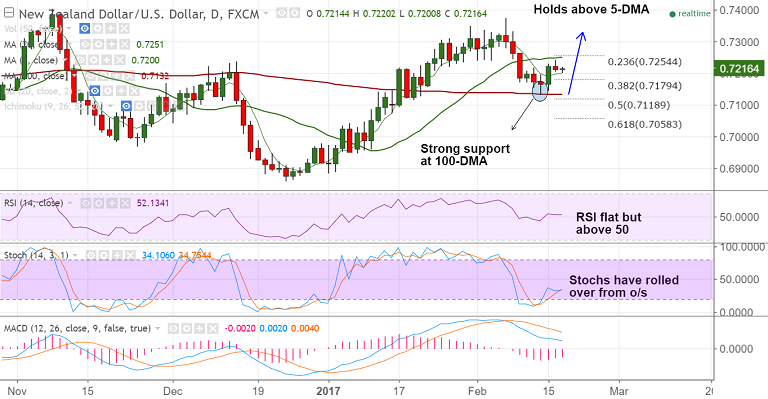 Support levels - 0.72 (5-DMA), 0.7179 (38.2% Fib retrace of 0.6862 to 0.7375 rise), 0.7132 (100-DMA)