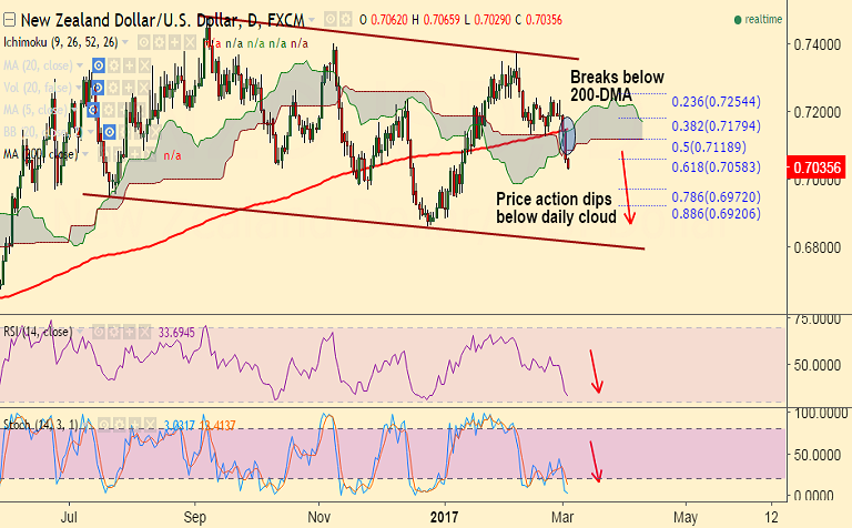 Resistance levels - 0.7084 (cloud base), 0.71, 0.7125 (5-DMA), 0.7147 (200-DMA)
