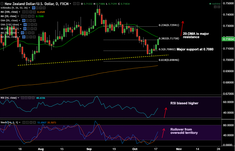 - The pair finds major resistance at 0.72 which is major psychological level and 20-day MA.