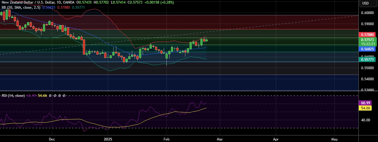 • NZD/USD steadied around 0.5750 on Monday as weakened dollar after economic data fuelled worries over the U.S. growth outlook.
