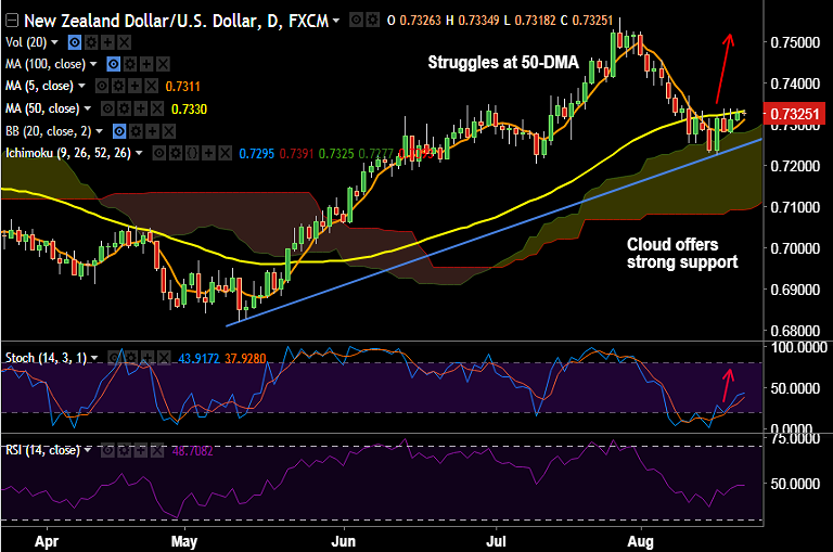- Decisive break above 50-DMA currently at 0.7330 could see test of 20-DMA at 0.7374.