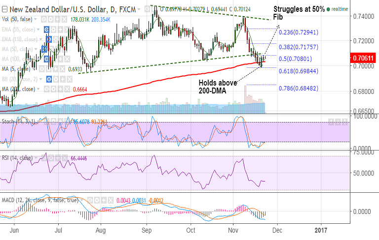- Major support levels - 0.7044 (5-DMA), 0.7030 (200-DMA), 0.6985 (61.8% Fib)
