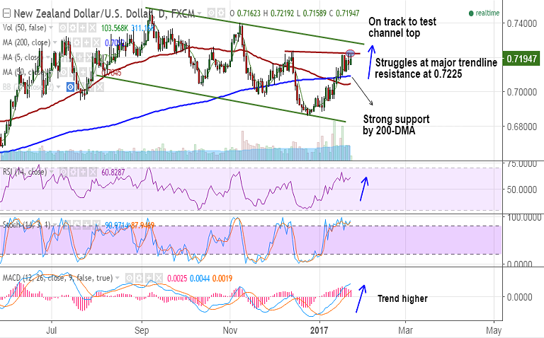 - Upside in the pair is struggling at 0.7225 which is major trendline resistance.