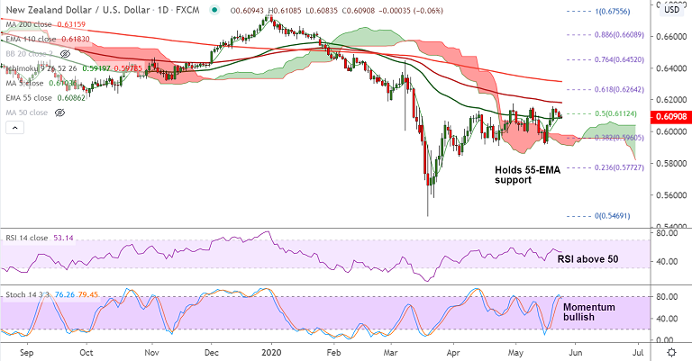 Support levels - 0.6086 (55-EMA), 0.6059 (21-EMA), 0.5978 (Cloud top)