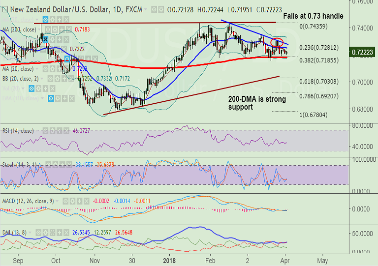 Support levels - 0.7185 (nearly converged 200-DMA and 38.2% Fib and cloud base), 0.7153 (March 21 low), 0.71