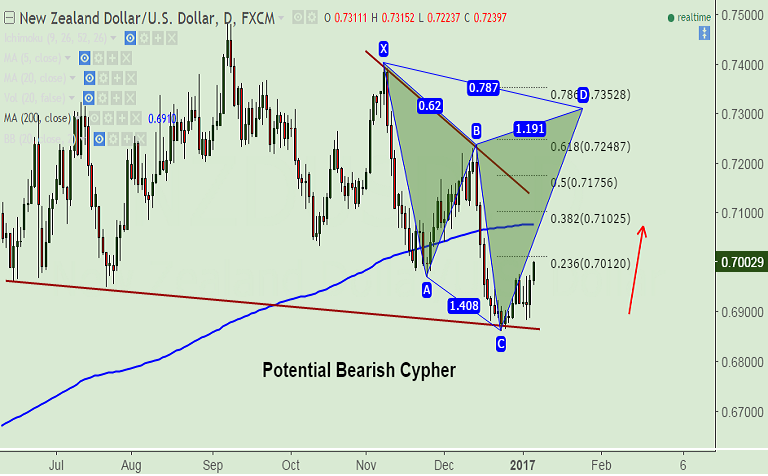 - Potential 'Bearish Cypher' pattern seen on daily charts.