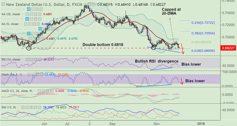 - The pair is trading with a bearish bias, fails to hold gains above 20-DMA.