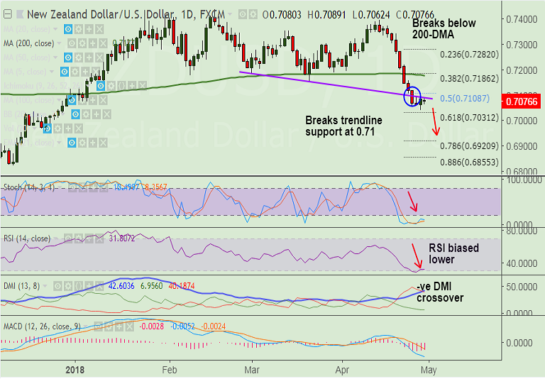 Resistance levels - 0.7082 (5-DMA), 0.71 (trendline), 0.7177 (200-DMA)