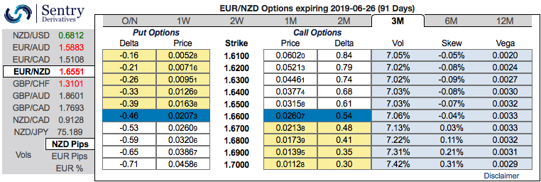 Please be noted that the positively skewed IVs (implied volatilities) of 3m tenors signify the hedgers’ interests in the upside risks (refer above nutshell). Bids for OTM calls strikes up to 1.68 levels are observed ahead of RBNZ monetary policy.