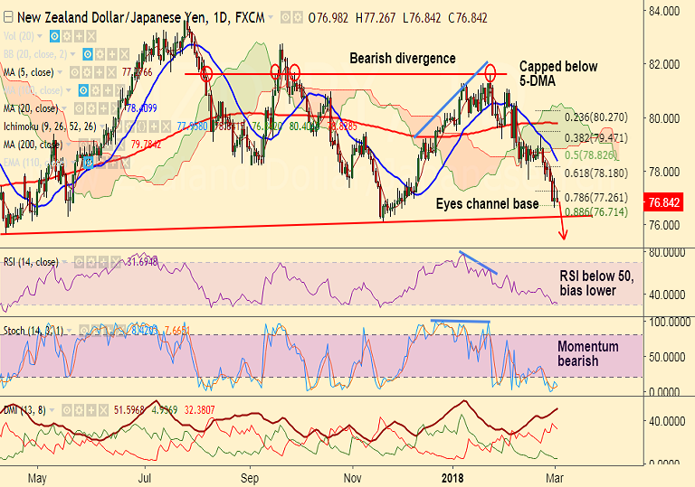 - NZD/JPY recovery from 2-month lows at 76.61 failed to hold break above 5-DMA on Thursday's day.