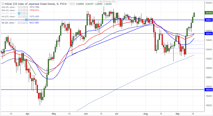 - Nikkei hits 2-1/2 month high on strong yen and higher global equities. The pair has broken yesterday high of 20131 and jumped till 20197at the time of writing . The index has closed well above 20000 and it is trading around 20187 0.46% higher.