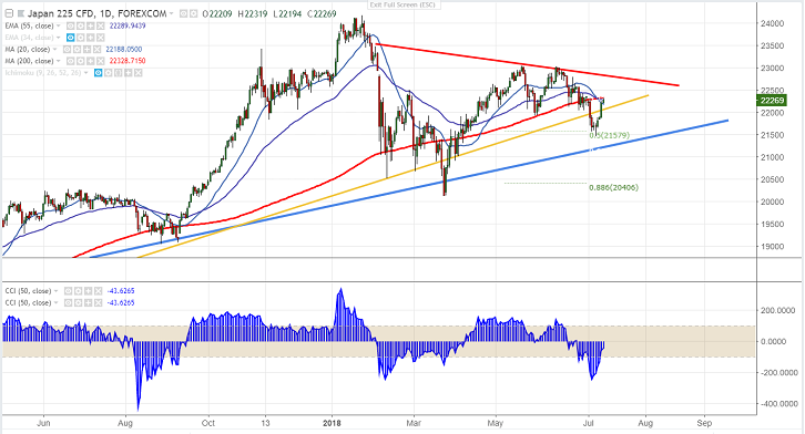 - The near term resistance is around 22320 (200-day MA) and any convincing break above will take the index to next level till 22500/22780.