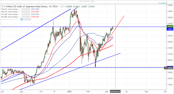 - Asian markets were trading higher on Monday as US –China trade war negotiations on hold.US Trade Secretary Steven Mnuchin said on Sunday that “We are putting the trade war on hold .Right now we have agreed to put the tariffs on hold while we try to execute the framework .Asian market especially Japan was up more than 0.75% due to weak yen. Dow jones 24715 (0.00%) closed flat and S&P500 2717 (0.26% lower) closed marginally lower. US futures is trading marginally positive with Dow jones at 24944 (0.92% higher) and S&P500 2728 (0.58% higher). It is currently trading around 23020 0.81% higher.