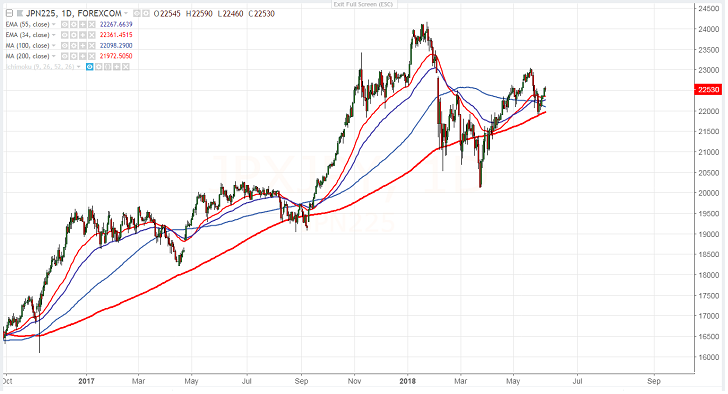 - Asian markets is trading steady after a rally yesterday. Positive US jobs data and easing Italy political uncertainty are supporting global stock market. US 10 –year bond yields jumped after hitting 1-1/2 month low at 2.74% on account of political uncertainty in Italy. The 10- year jumped form the low and hits 11- day high at 2.949%. US markets have closed slightly higher yesterday with Dow Jones 24813 (0.72% higher) and S&P500 2746 (0.45% higher). US futures is trading flat with Dow Jones at 24791 (0.05% lower) and S&P500 2744 (-0.05% lower).Nikkei is currently trading around 22530 0.07% lower.