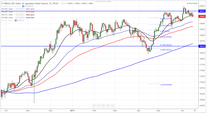 - The near term resistance of Nikkei is around 20000 and break above will take the index to recent high of 20228/20477 (161.8% retracement of 20019 and 19277).