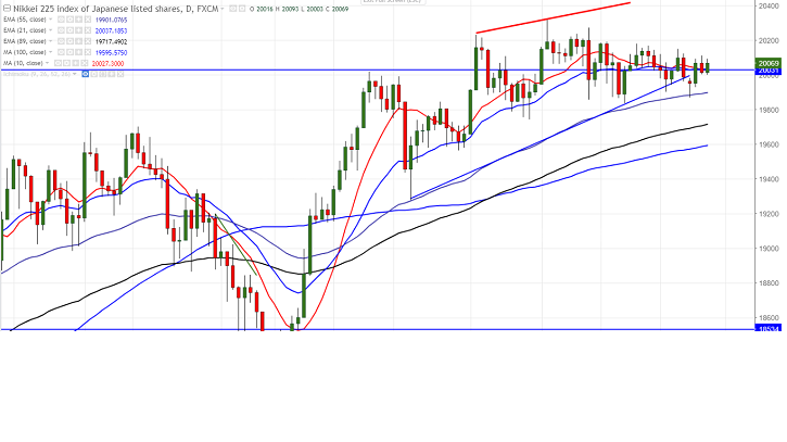 - The near term resistance of Nikkei is around 20400 (trend line joining 20230 and 20319) and break above will take the index to 20477 (161.8% retracement of 20019 and 19277) /20530 (161.8% retracement of 20220 and 19744)/20649 (161.8% retracement of 19698 and 18193).