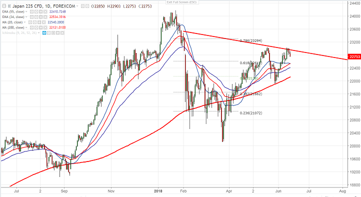 - Asian markets were trading slightly lower after FOMC meeting. US fed hiked interest rates by 25bpbs to 1.75% -2% as expected. The fed was more optimistic on the economy and medium rate hike for 2018 was revised to 4 times from 3 times. Markets was trading weak as Fed signals faster rate hike. Nikkei declined almost 200 points from the high 23024. US markets have closed slightly weak with Dow Jones 25201 (0.47% lower) and S&P500 2775 (0.40%lower). US futures is trading slightly higher flat with Dow Jones at 25155 (0.16% lower) and S&P500 27 (0.36% higher).Nikkei is currently trading around 22775 0.32% lower.